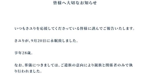 シンガーソングライターの酸欠少女さユりさんが、9月20日に亡くなっていたことが分かりました。さユりさんは、アニメ『乱歩奇譚 Game of Laplace』(フジテレビ系)のED主題歌『ミカヅキ』で2015年8月にメジャーデビュー。以降、アニメ『ゴールデンカムイ』…